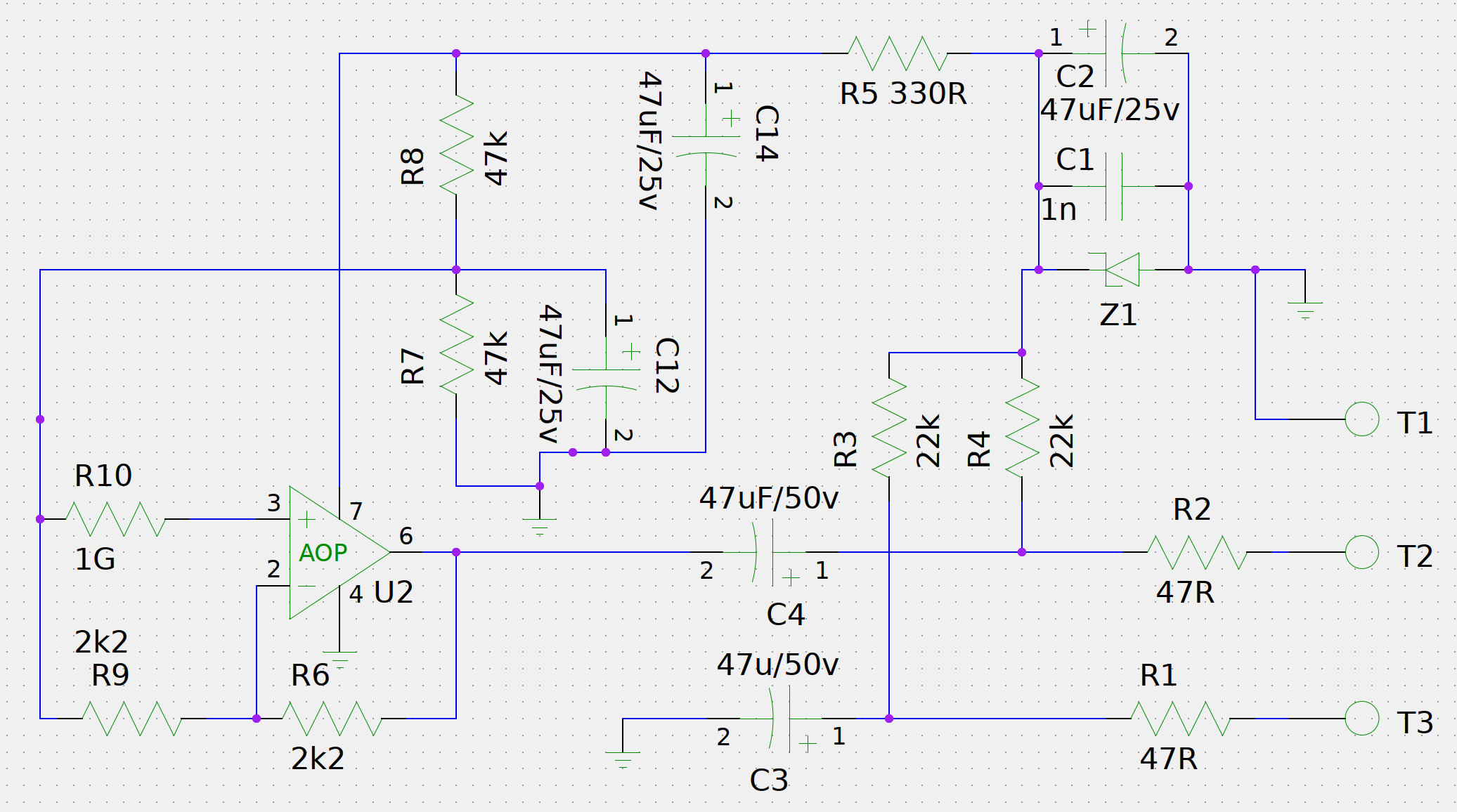 As you can see from the photo, I have made the dip8 adapter so that the connection from the input pin of the opamp is soldered directly to the 1G resistor and the capsule wire without using the board trace. This is to minimise the risk of a dirty board and extra wiring length causing issues with the high impedance input. It may not be necessary if you keep the board clean - I was just experimenting with how easy it is to do (very).