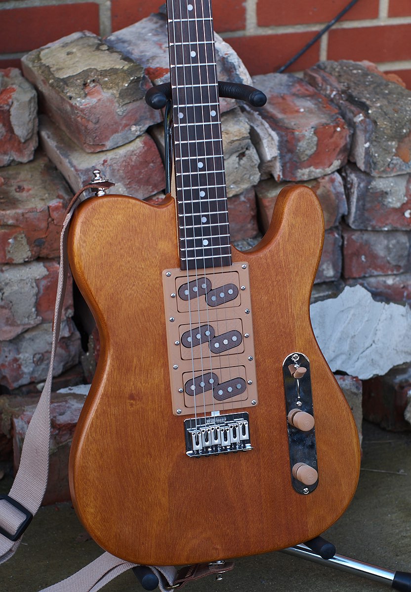 These could also be made with alnico polepiece magnets as in the above designs, but mounted on the scratchplate as these ones are.
