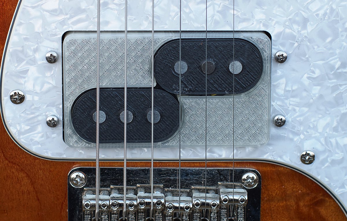 These pickups are mounted directly on the scratchplate like a strat pickup, not in a frame. This allows more space for the magnets underneath.